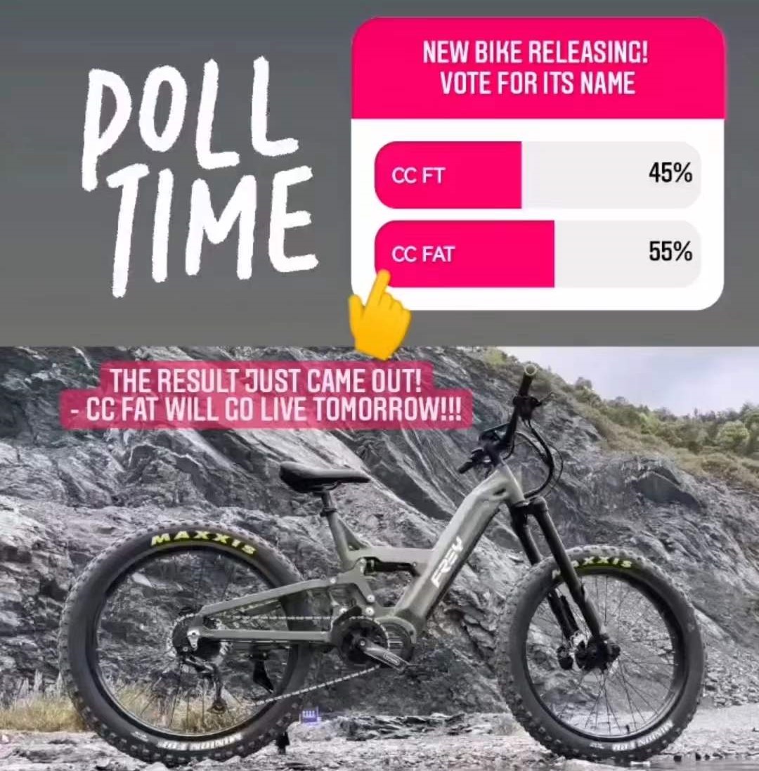 Thanks to those who voted for its name on our Instagram. Now, it is releasing! The first 50 orders will get $500 off, and the first 50-100 orders will get $300 off. But we only produce 100 bikes at this moment. Getting curious about CC FAT? Let's see how CC FAT perform in the e-bike world!
