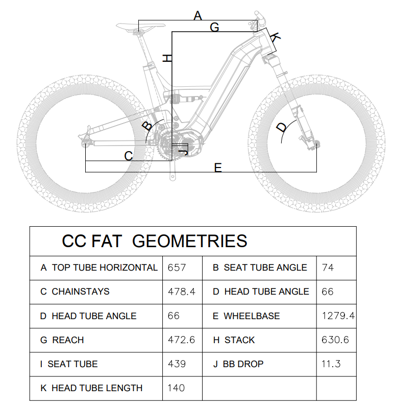Fat Tires, Bafang M620, 48V21AH(1008WH) extensive battery system, all these are Liberty's DNA- empowers its rider with the certainty to calmly master trails, suburbs, beaches, snowing forest, hunting, etc... It represents the feeling of mental freedom. The actual CC FAT Bike battery size is a bit larger than the sample bike shown above. Please refer to the battery size of FREY AM1000 V6 and the geometrics image below.