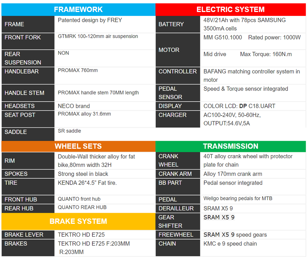 Battery: Big capacity down tube 48V/21AH (1008WH)